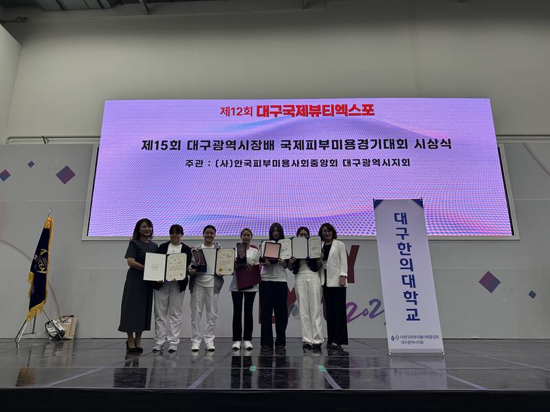 대구한의대는 뷰티케어학과 학생들이 2025년 5월 17일 대구 EXCO에서 열린 ‘제15회 대구광역시장배 국제피부미용경기대회’에 출전해 여러 종목에서 두각을 나타냈다고 밝혔다.